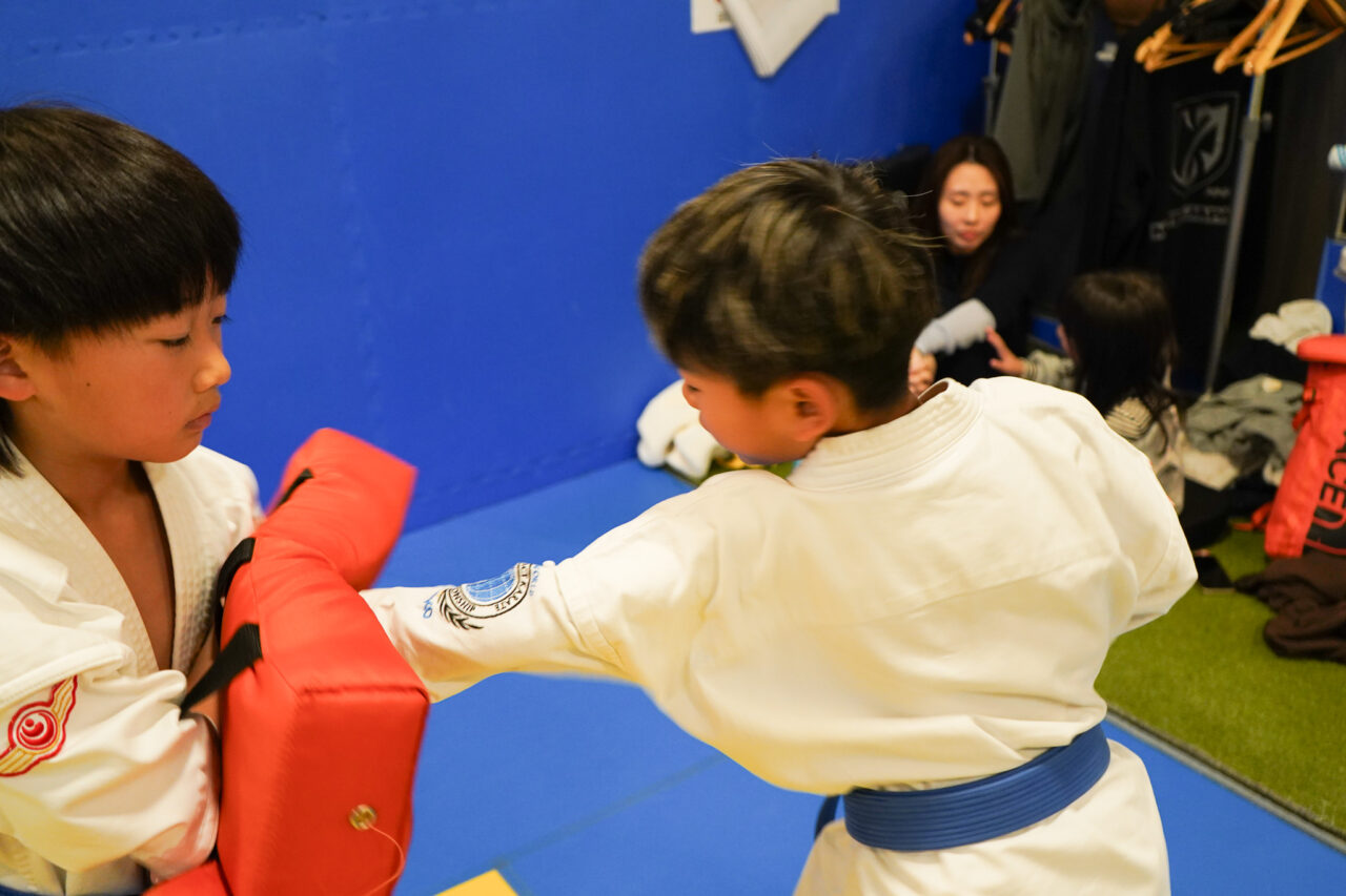 少年部の熱の入ったミット打ち